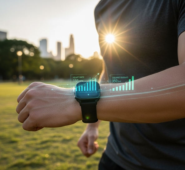 - ウェアラブルデバイスで歩数やカロリーを記録し、フィードバックを得る。