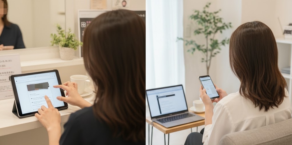 パソコンとスマホ画面で口コミを買おうとしている画像
