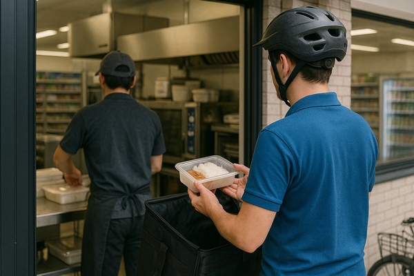 - 配達員専用の「渡す場所」を作る: レジで普通のお客さんと配達員が混み合わないように、「デリバリーの受け渡しはここ」と決めた、専用のカウンターを設けます。配達員がすぐに商品を受け取れるようにすれば、配達時間が短縮され、アプリの評価も上がります。