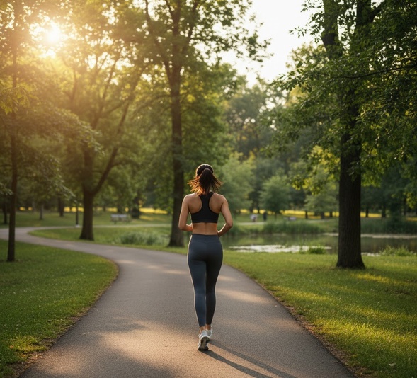 成感 ジムでの有酸素運動だけでなく、自然の中での活動も連想させるようなイメージ