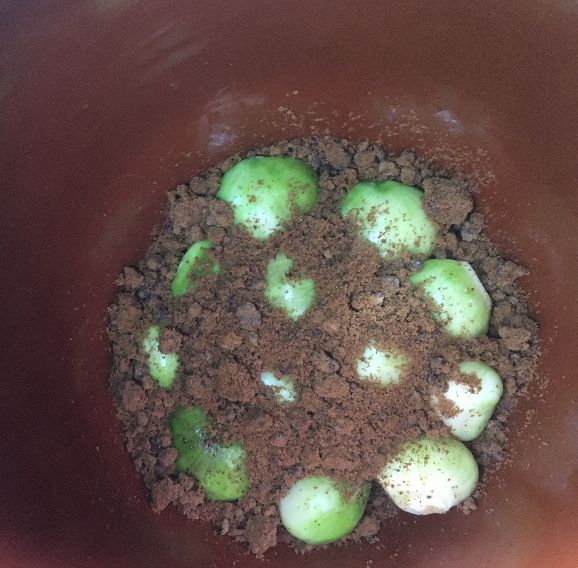 壺に入れた黒糖に無臭ニンニクを漬け込んだ上からの画像