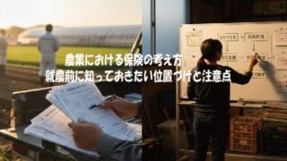 ライフ 農業における保険の考え方|就農前に知っておきたい位置づけと注意点 農業での就農や独立を考える際、「保険は入っておいたほうがいいのか?」「農家にとって保険はどんな役割を持つのか?」と悩む方は少なくありません。会社員時代であれば、健康保険や労災保険、各種保障制度が自動的に用意されていましたが、就農後は自分でリ... 2026.02.03 ライフ