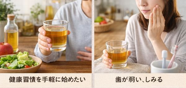 - リンゴ酢が向いている人|こんな悩みを持つ方に「おすすめ」の理由