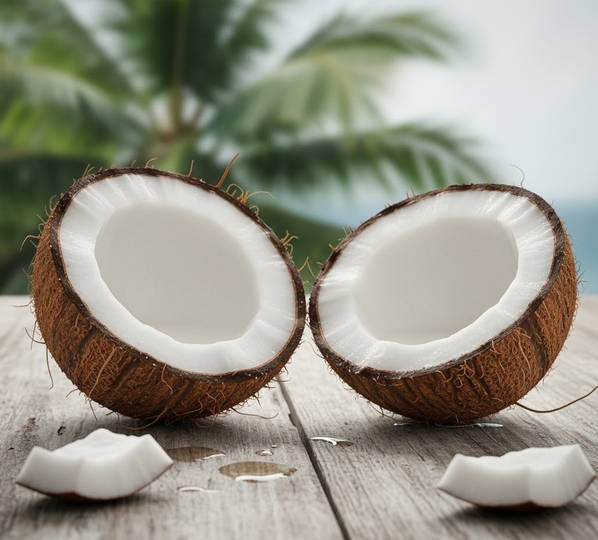 ココナッツヤシが半分に割られている画像