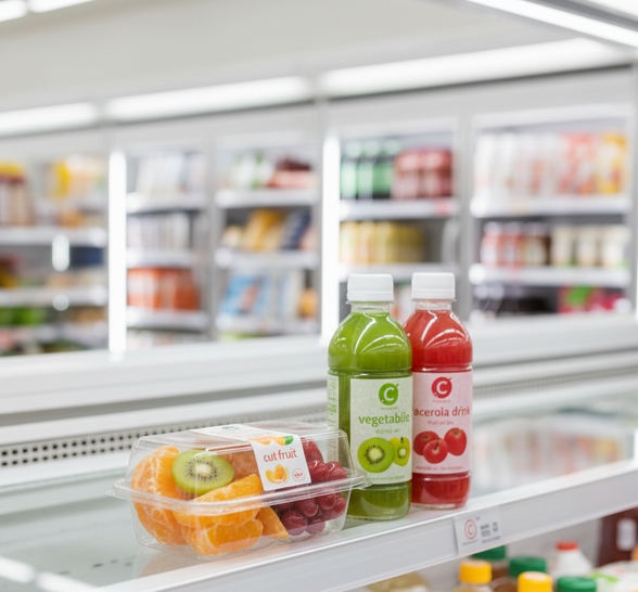 コンビニエンスストアの冷ケースに並ぶ、ビタミンCを意識した商品