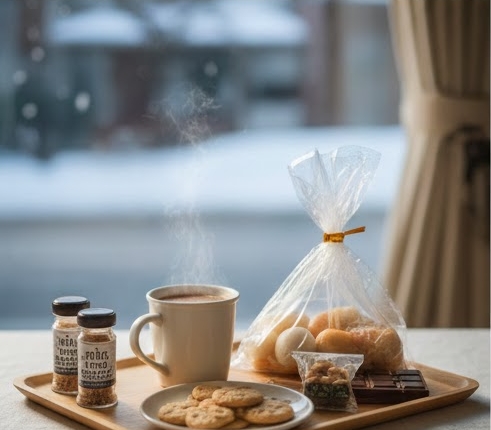 ココアや指紋パウダーやクッキーの温活のお菓子の画像